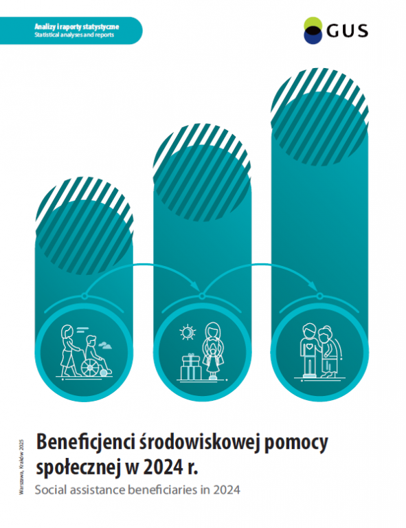 Publikacja przedstawia: zmiany w wielkości populacji beneficjentów środowiskowej pomocy społecznej i ich gospodarstw domowych; skalę korzystania z tej pomocy wraz z regionalnym jej zróżnicowaniem; zbiorowość beneficjentów i ich gospodarstw domowych, w tym gospodarstw jednoosobowych w 2024 r., z licznymi odniesieniami do początku dekady 2015–2024; ubogich beneficjentów środowiskowej pomocy społecznej i ich gospodarstwa domowe; problem trwałości korzystania z pomocy społecznej oraz świadczeniobiorców według głównych rodzajów świadczeń i ich charakterystyki demograficzne.